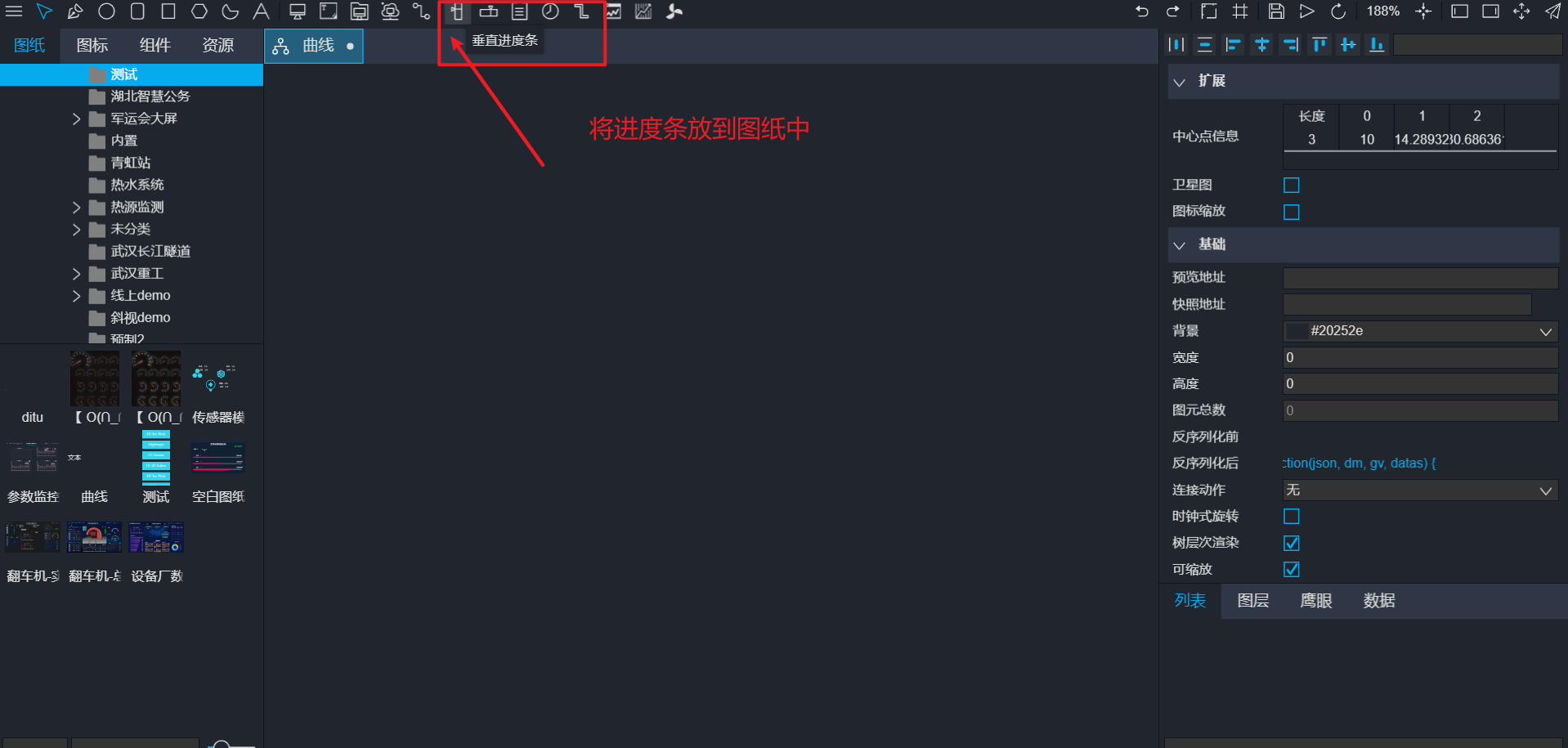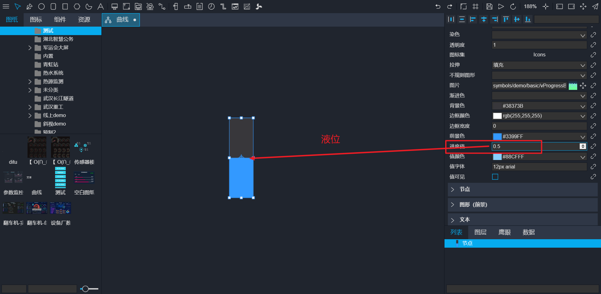 目录 搜索 展开 IOTOS物联网中间件平台物联中台操作手册名词解释用户管理权限管理系统设备管理通信网关设备实例数据点模板驱动视频设备管理报表管理事件规则联动数据推送设置驱动库IOTOSQL语法快速入门南向接口SDK介绍环境搭建代码说明开发参考HelloWorld实战1:Modbus协议实战2:MQTT协议实战3:HTTP协议实战4:NB设备实战5:海康门禁接口模拟实践Modbus-rtu报文协议TCP连接透传测试BACnet协议设备模拟实践OPC协议设备模拟实践实施配置Modbus rtu驱动配置MQTT对接协议北向接口HTTP示例MQTT对接协议WebSocket示例Web回调示例常见问题开发视频附录一附录二物联组态用户名词解释界面功能介绍快速入门创建图纸创建图标创建组件图元操作绘制管道数据绑定事件交互图标属性暴露表格制作图表制作引入外部JS绘制2.5D图元时间日期、曲线、风扇、液位的创建实时折线图、下发按钮常见问题开发视频应用平台快速入门SDK介绍环境搭建代码说明新建应用运行预览常见问题开发视频运行环境要求IOTOS通采引擎盒联系与支持 暂无相关搜索结果! 时间日期曲线风扇液位时间日期 选中文本选中想要的日期/时间/星期/日期+时间预览效果曲线 选中折线图配置折线图属性效果预览风扇选中风扇在拓展中选中风扇更改风扇转速预览效果液位选中垂直进度条配置垂直进度条属性预览效果作者:IOTOS 创建时间:2022-01-10 10:31最后编辑:IOTOS 更新时间:2023-11-29 09:38
