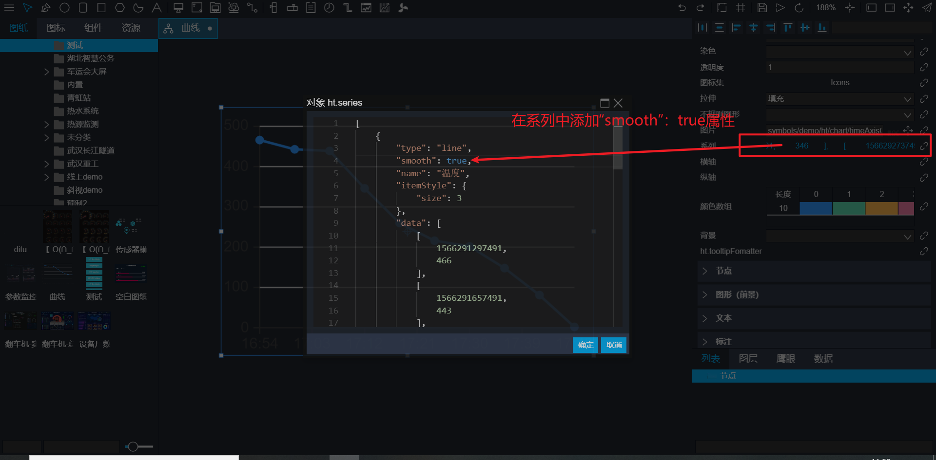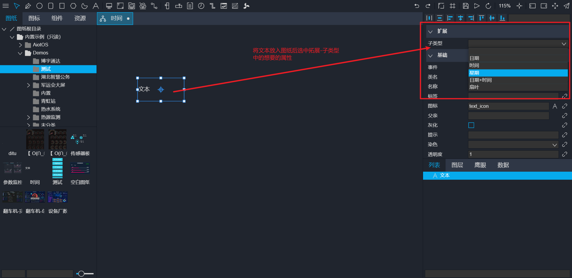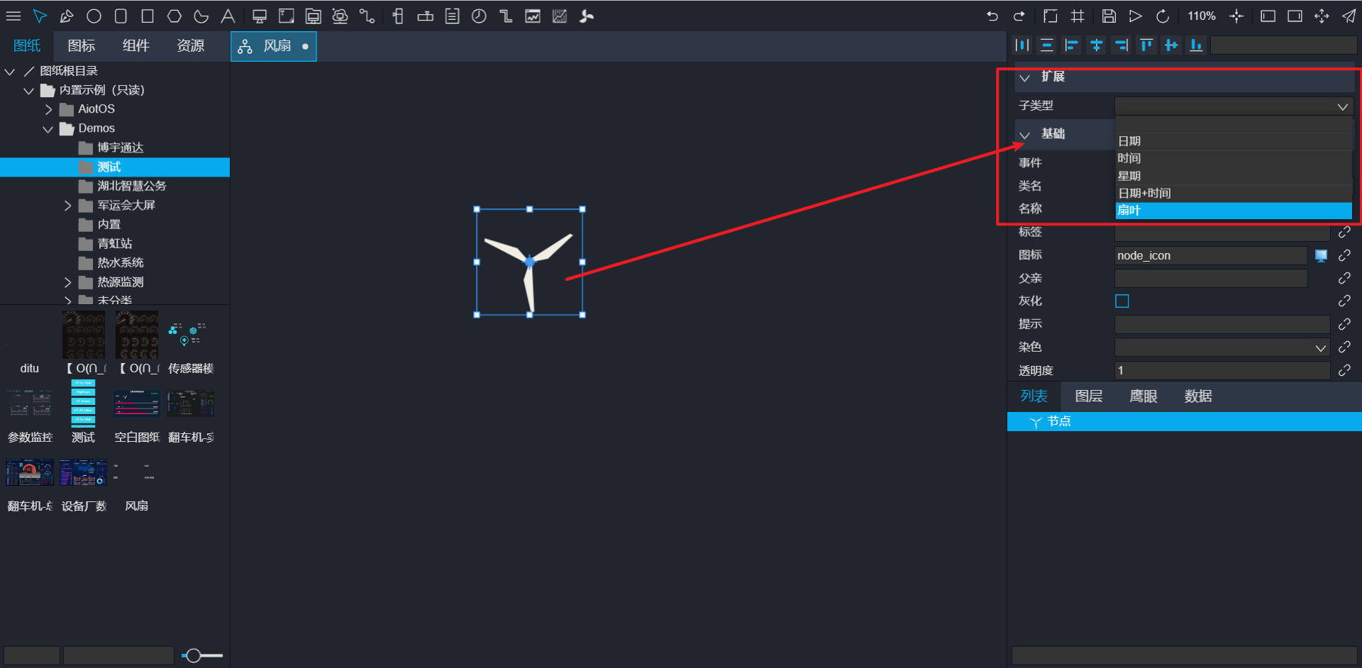 时间日期曲线风扇液位时间日期 选中文本选中想要的日期/时间/星期/日期+时间预览效果曲线 选中折线图配置折线图属性效果预览风扇选中风扇在拓展中选中风扇更改风扇转速预览效果液位选中垂直进度条配置垂直进度条属性预览效果作者:IOTOS 创建时间:2022-01-10 10:31最后编辑:IOTOS 更新时间:2023-11-29 09:38