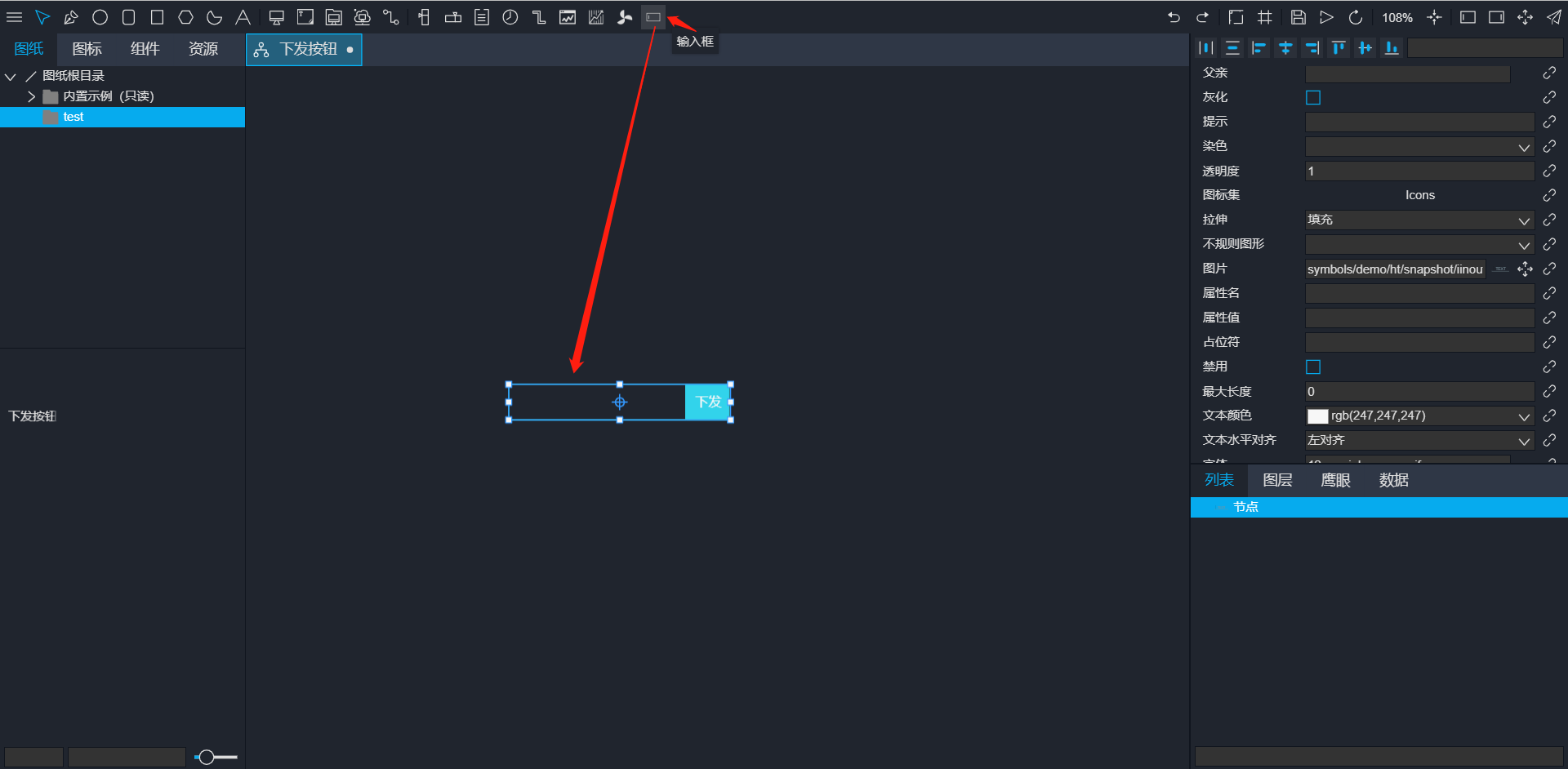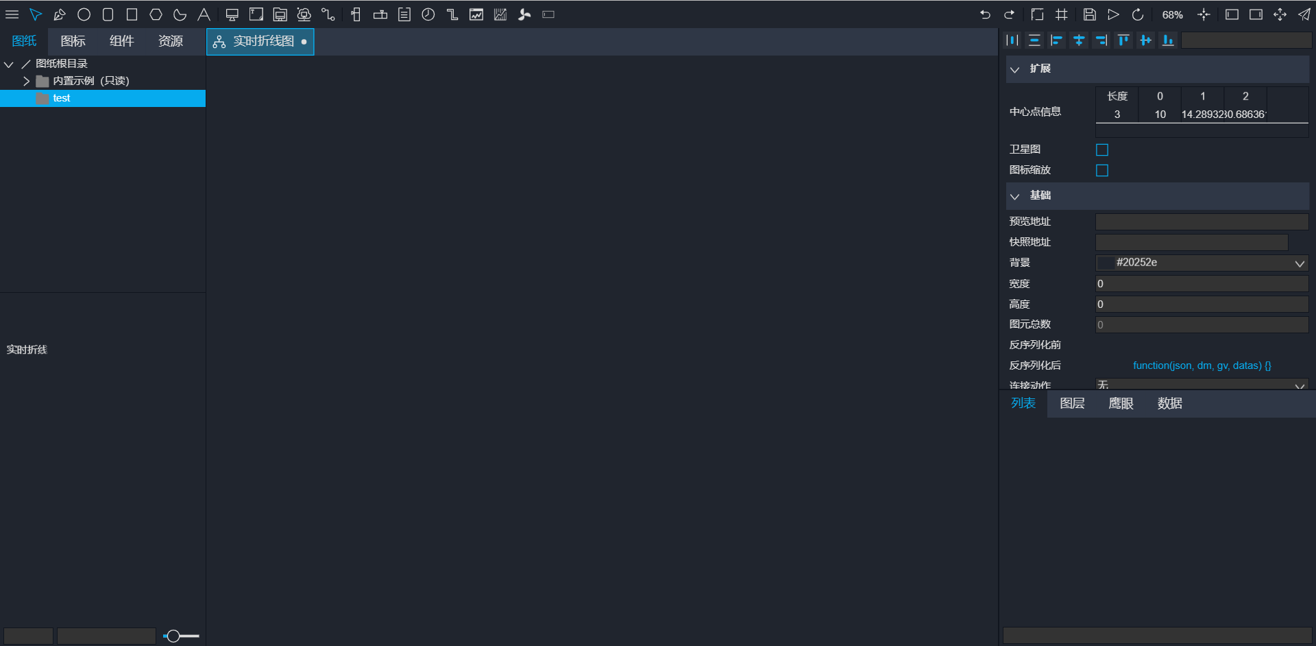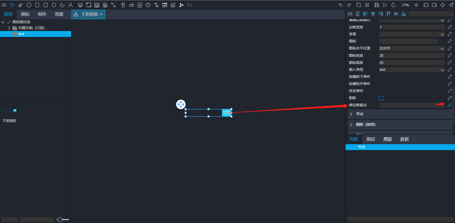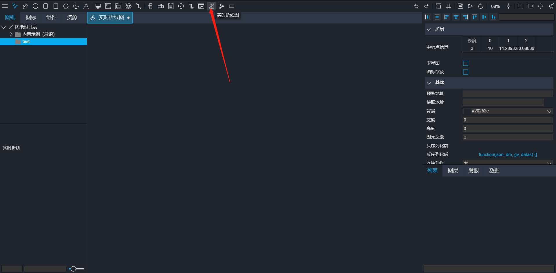 实时折线图 新建图纸选中左上方默认样式中的实时折线图拖到编辑区域内即可看到默认样式可编辑属性更改折线图样式绑定中台数据数据绑定后运行效果如下中台数据如下 下发按钮 新建图纸选中左上方默认样式中的下发按钮拖到编辑区域内即可看到默认样式绑定中台数据,打开事件处理使用效果,按钮或者回车都可以下发作者:IOTOS 创建时间:2022-03-07 11:53最后编辑:IOTOS 更新时间:2023-11-29 09:38