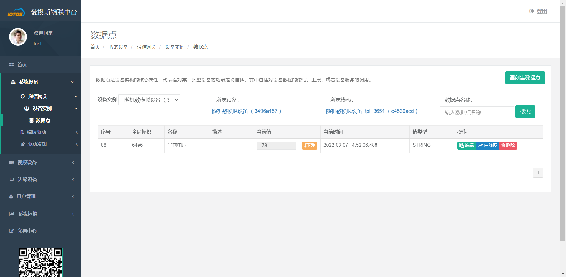 目录 搜索 展开 IOTOS物联网中间件平台物联中台操作手册名词解释用户管理权限管理系统设备管理通信网关设备实例数据点模板驱动视频设备管理报表管理事件规则联动数据推送设置驱动库IOTOSQL语法快速入门南向接口SDK介绍环境搭建代码说明开发参考HelloWorld实战1:Modbus协议实战2:MQTT协议实战3:HTTP协议实战4:NB设备实战5:海康门禁接口模拟实践Modbus-rtu报文协议TCP连接透传测试BACnet协议设备模拟实践OPC协议设备模拟实践实施配置Modbus rtu驱动配置MQTT对接协议北向接口HTTP示例MQTT对接协议WebSocket示例Web回调示例常见问题开发视频附录一附录二物联组态用户名词解释界面功能介绍快速入门创建图纸创建图标创建组件图元操作绘制管道数据绑定事件交互图标属性暴露表格制作图表制作引入外部JS绘制2.5D图元时间日期、曲线、风扇、液位的创建实时折线图、下发按钮常见问题开发视频应用平台快速入门SDK介绍环境搭建代码说明新建应用运行预览常见问题开发视频运行环境要求IOTOS通采引擎盒联系与支持 暂无相关搜索结果! 实时折线图 新建图纸选中左上方默认样式中的实时折线图拖到编辑区域内即可看到默认样式可编辑属性更改折线图样式绑定中台数据数据绑定后运行效果如下中台数据如下 下发按钮 新建图纸选中左上方默认样式中的下发按钮拖到编辑区域内即可看到默认样式绑定中台数据,打开事件处理使用效果,按钮或者回车都可以下发作者:IOTOS 创建时间:2022-03-07 11:53最后编辑:IOTOS 更新时间:2023-11-29 09:38