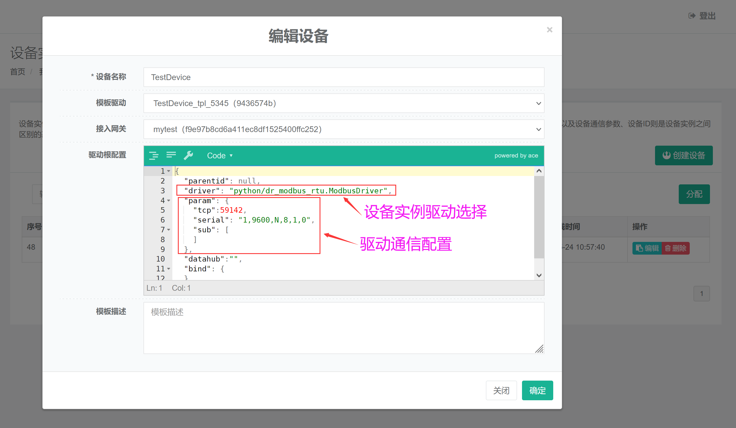 param为固定字段,内部的“tcp”、“serial”等字段为驱动包自定义字段,通常用于配置与具体接入设备的通信连接参数。配置同种类型不同设备的接入,差异化主要就在这里。